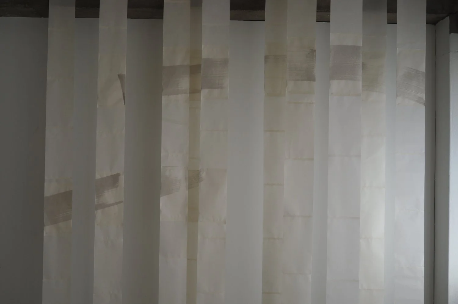 전체 작품은 단편적인 순간들의 모음으로, 얇은 종이들이 겹치고 서로 얽혀 있으며, 짙고 옅은 색의 대비, 연결되고 끊어지는 선, 그리고 때때로 이루어지는 상호작용과 유대감을 통해 감정과 지역 사회 내 상호작용의 교차점을 시각적으로 표현합니다.